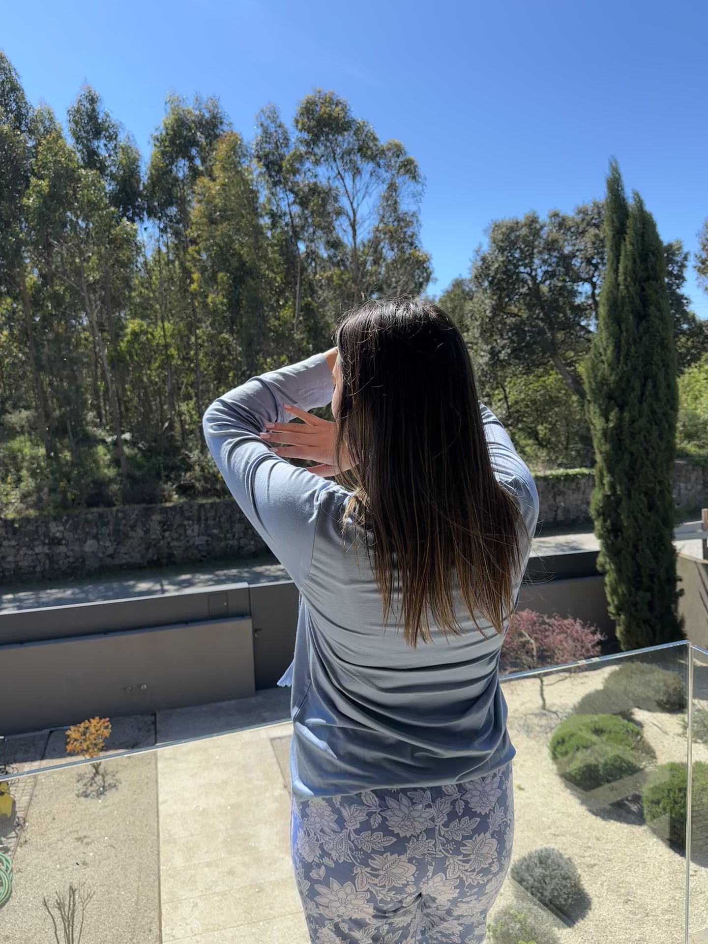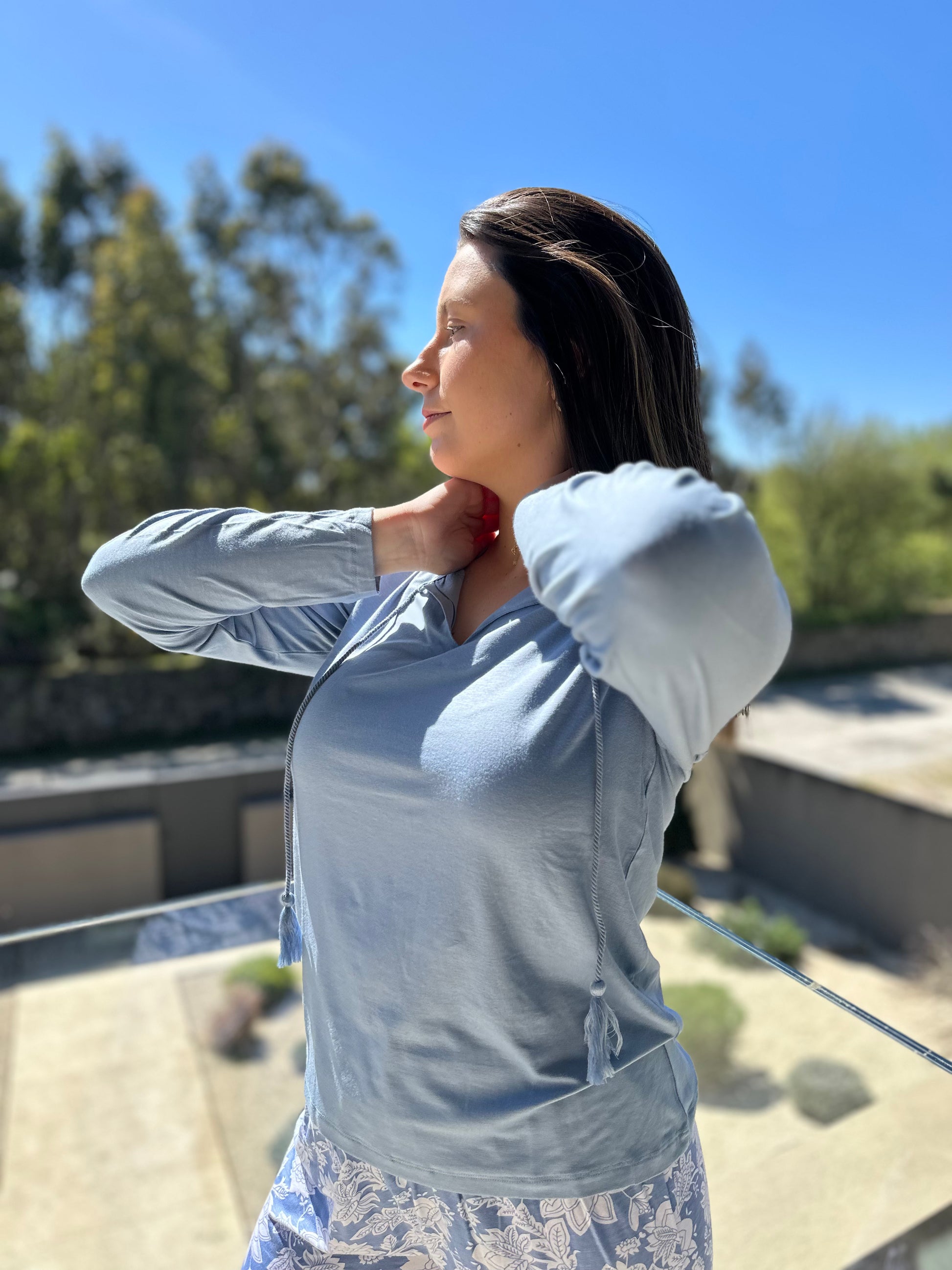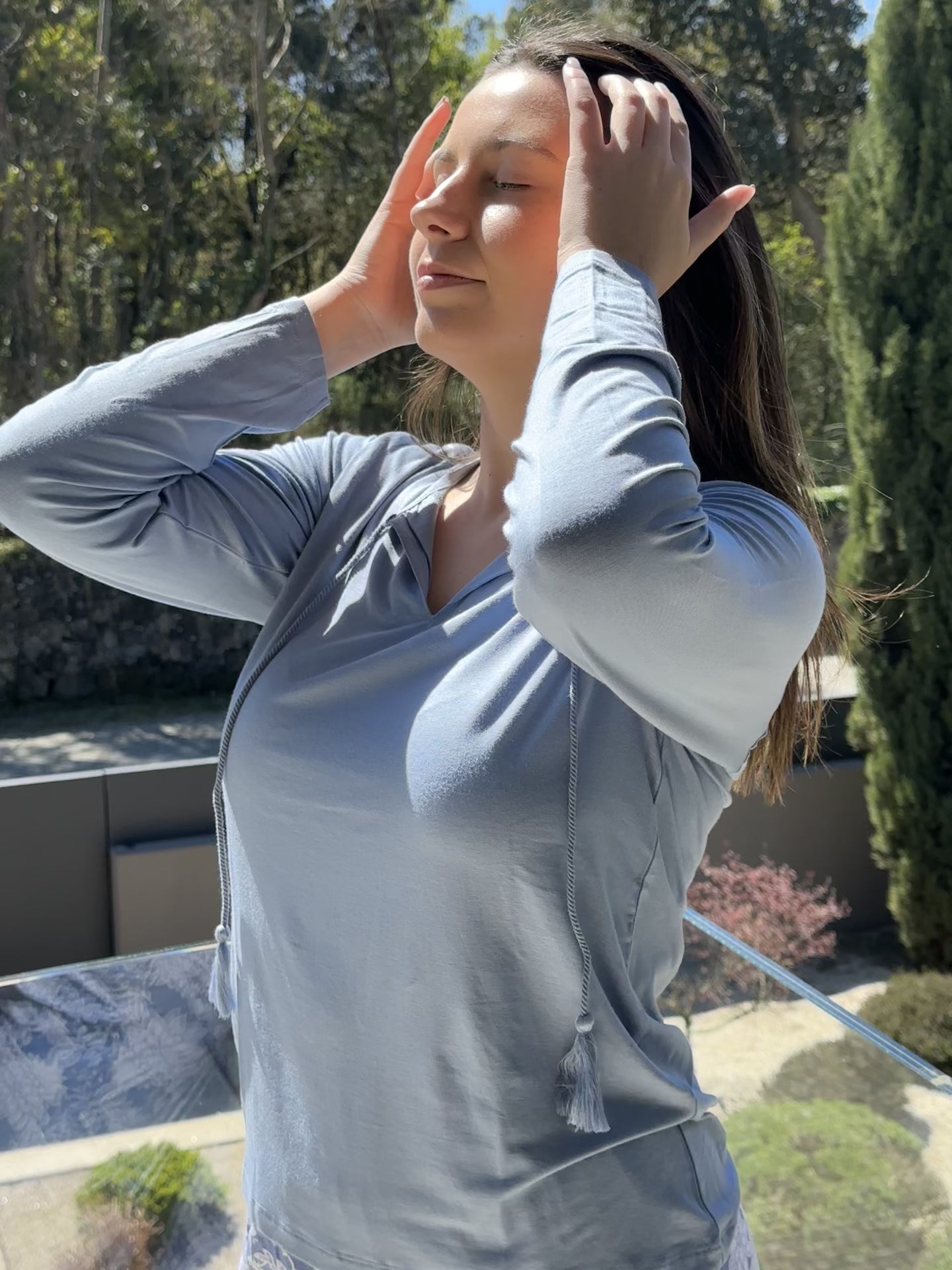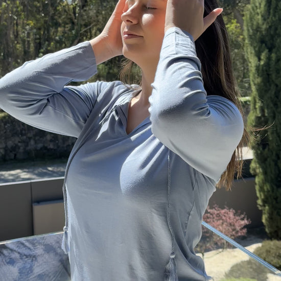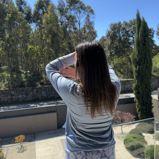 A modelo veste o tamanho M para um efeito fluído e confortável.