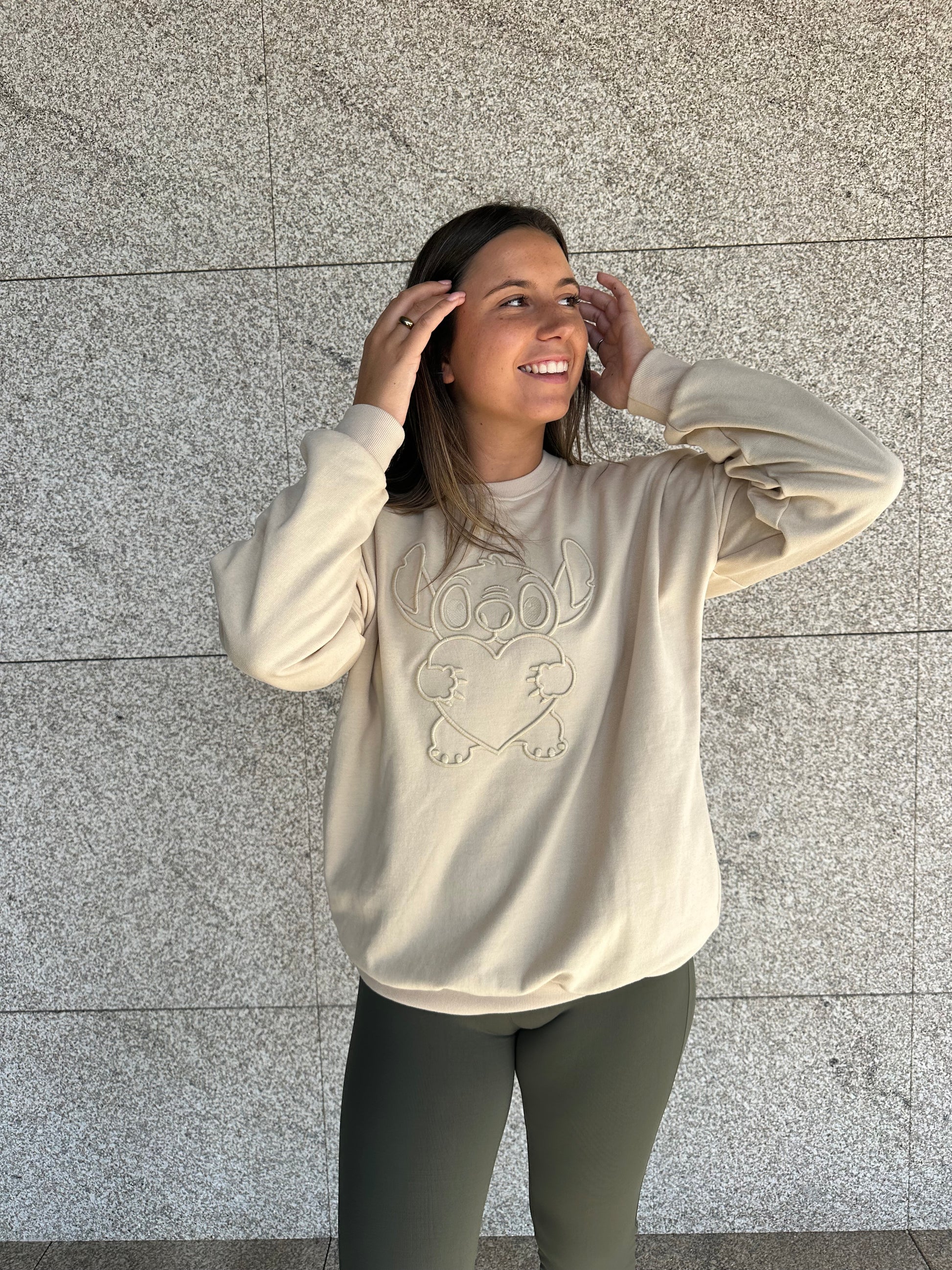 Sweatshirt de corte oversized, de manga comprida. Possui estampado em relevo na parte da frente. Punhos, gola e parte inferior com acabamento em nervuras. Com carda no interior, para maior conforto e aconchego. Modelo largo e descontraído. Contém bolso. Modelo em tamanho único - 36/42