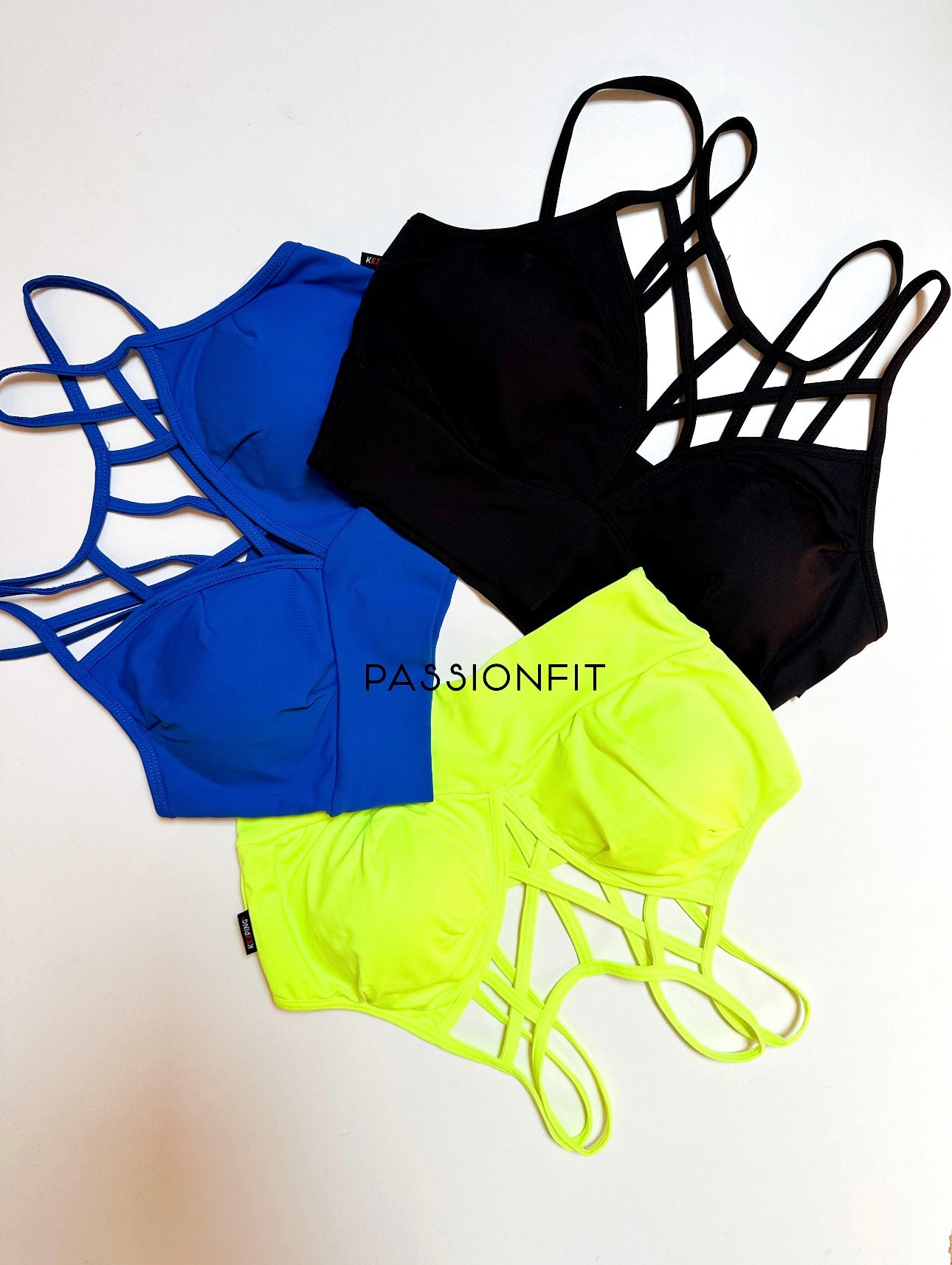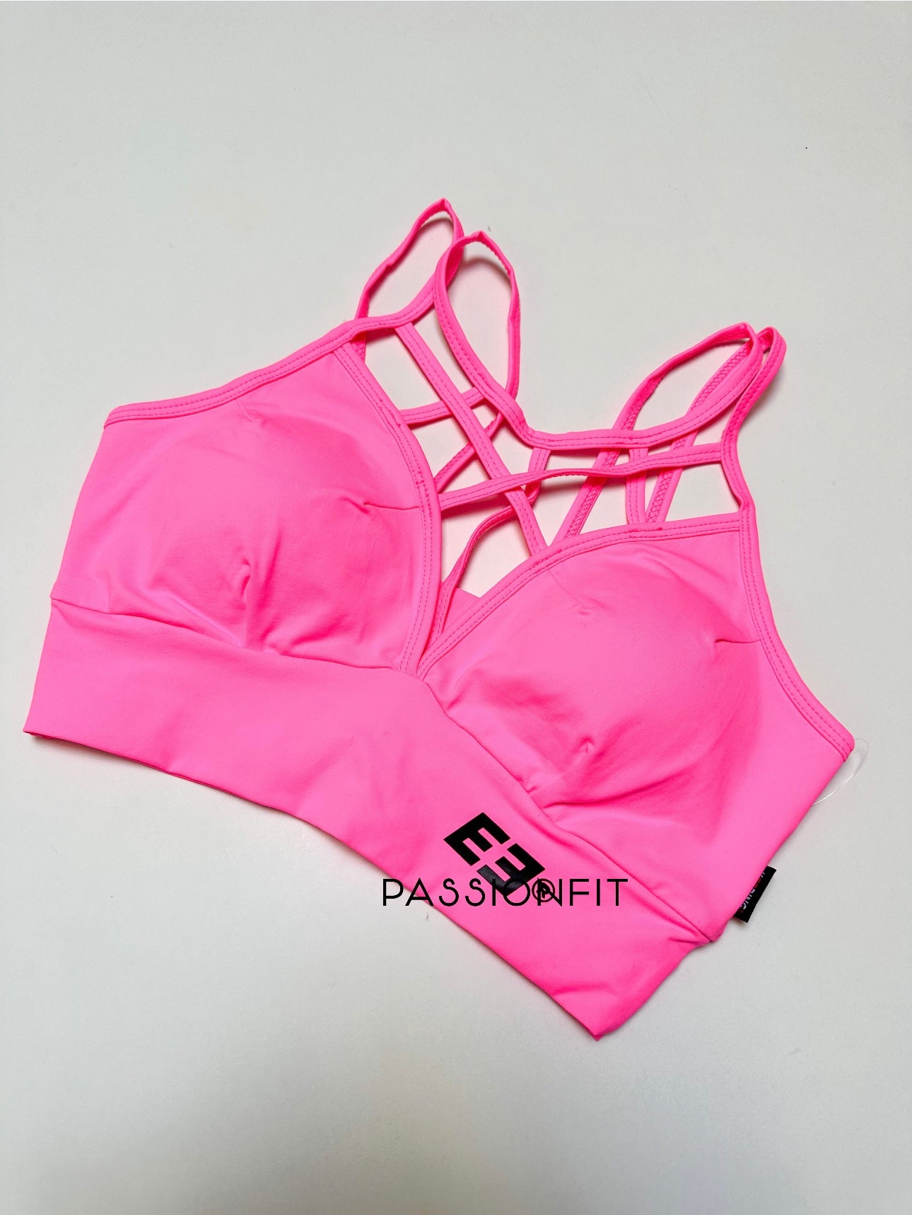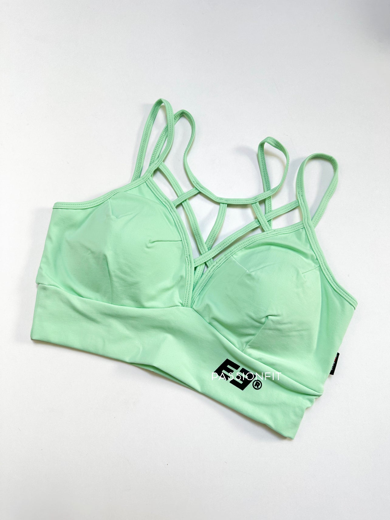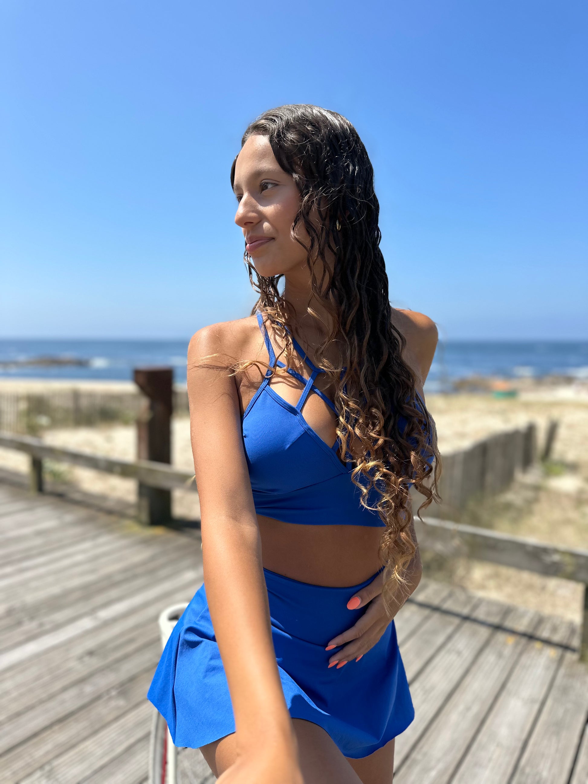 Modelo de decote em "V", com alças finas que se cruzam entre si mas, apesar de serem finas, suportam bem o peito. Com copas amovíveis.